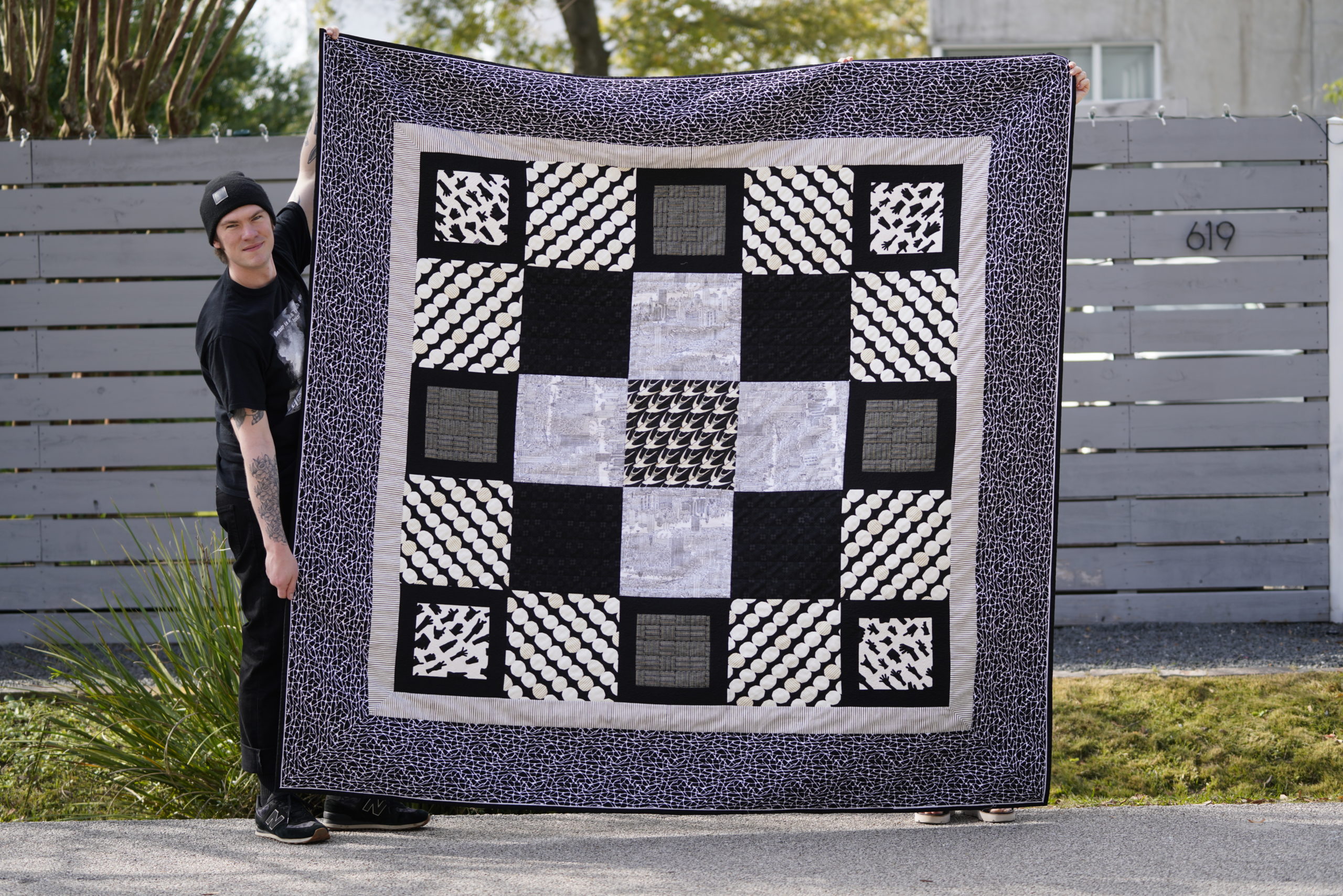 Techniques: machine piecing, free-motion quilting, flanged machine binding.