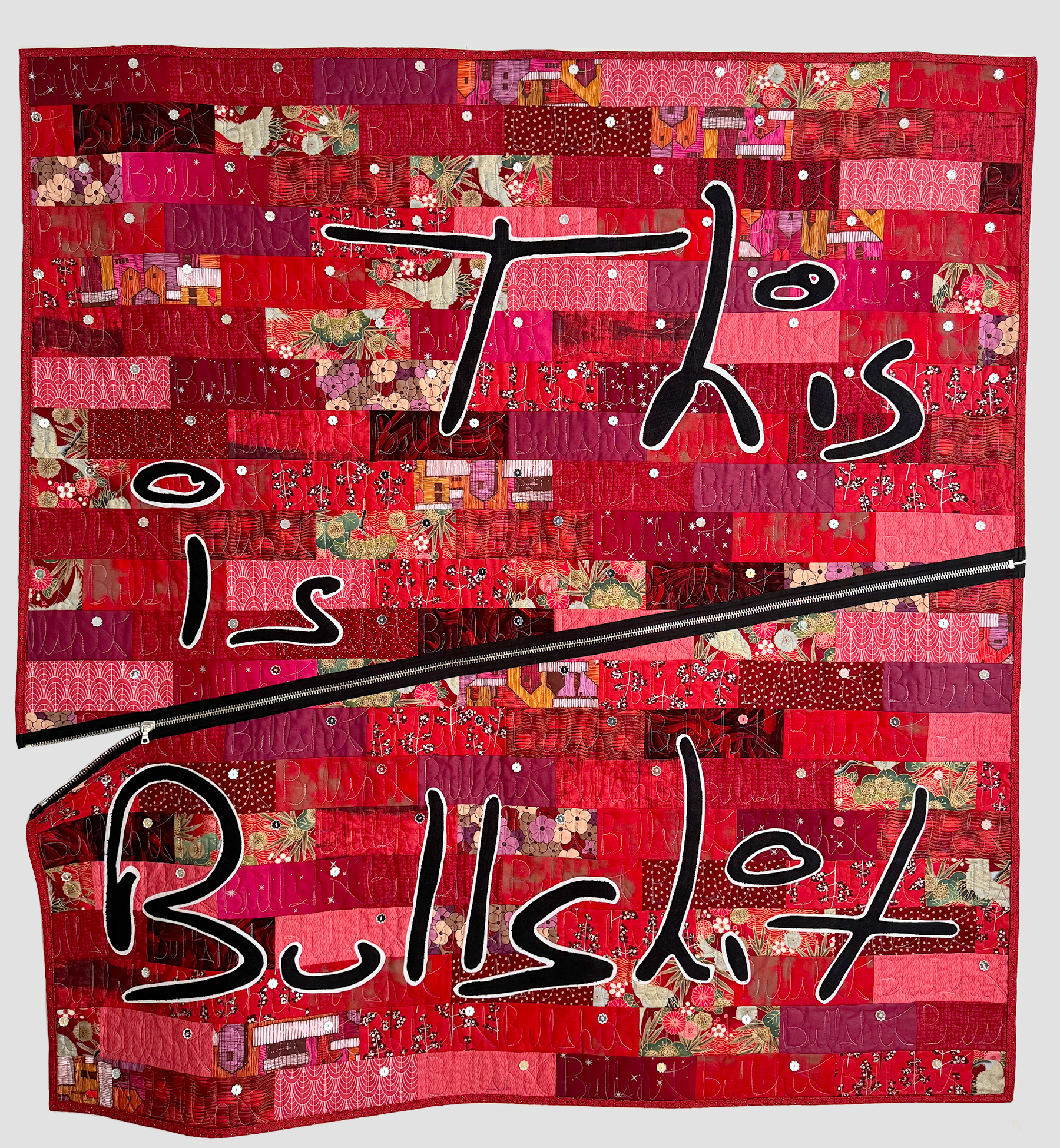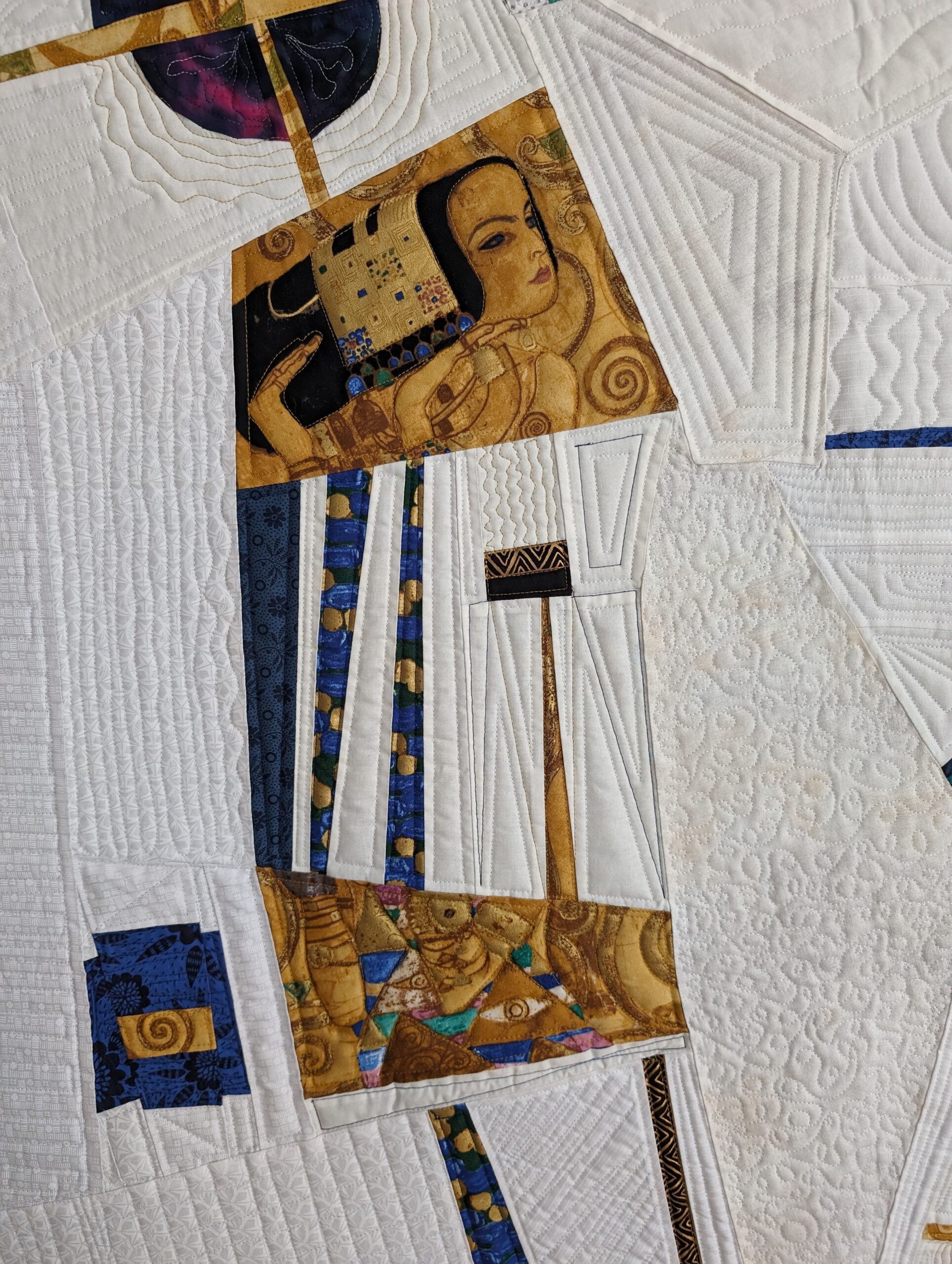 Materials: cotton and lamé fabric, wool batting, cotton thread.