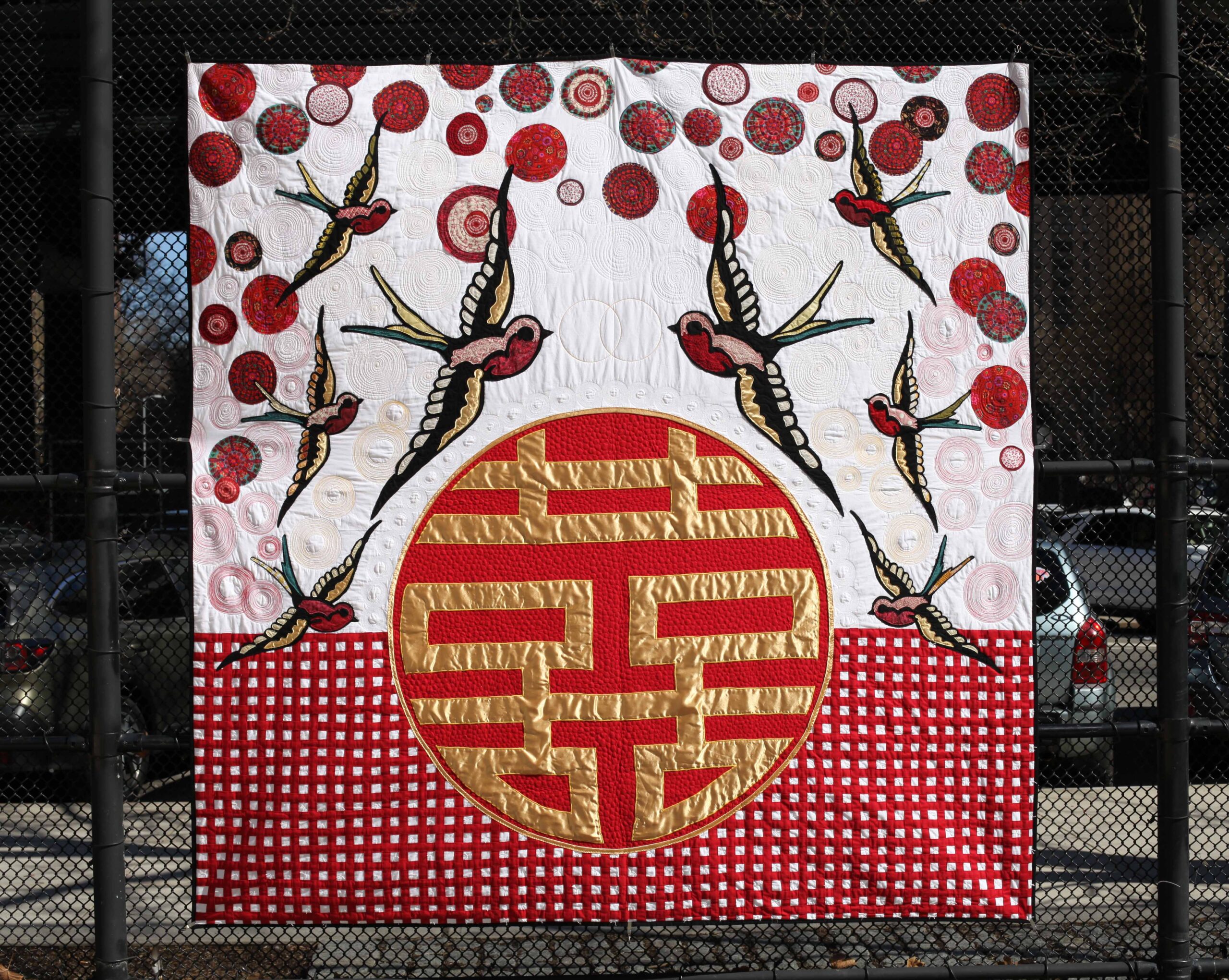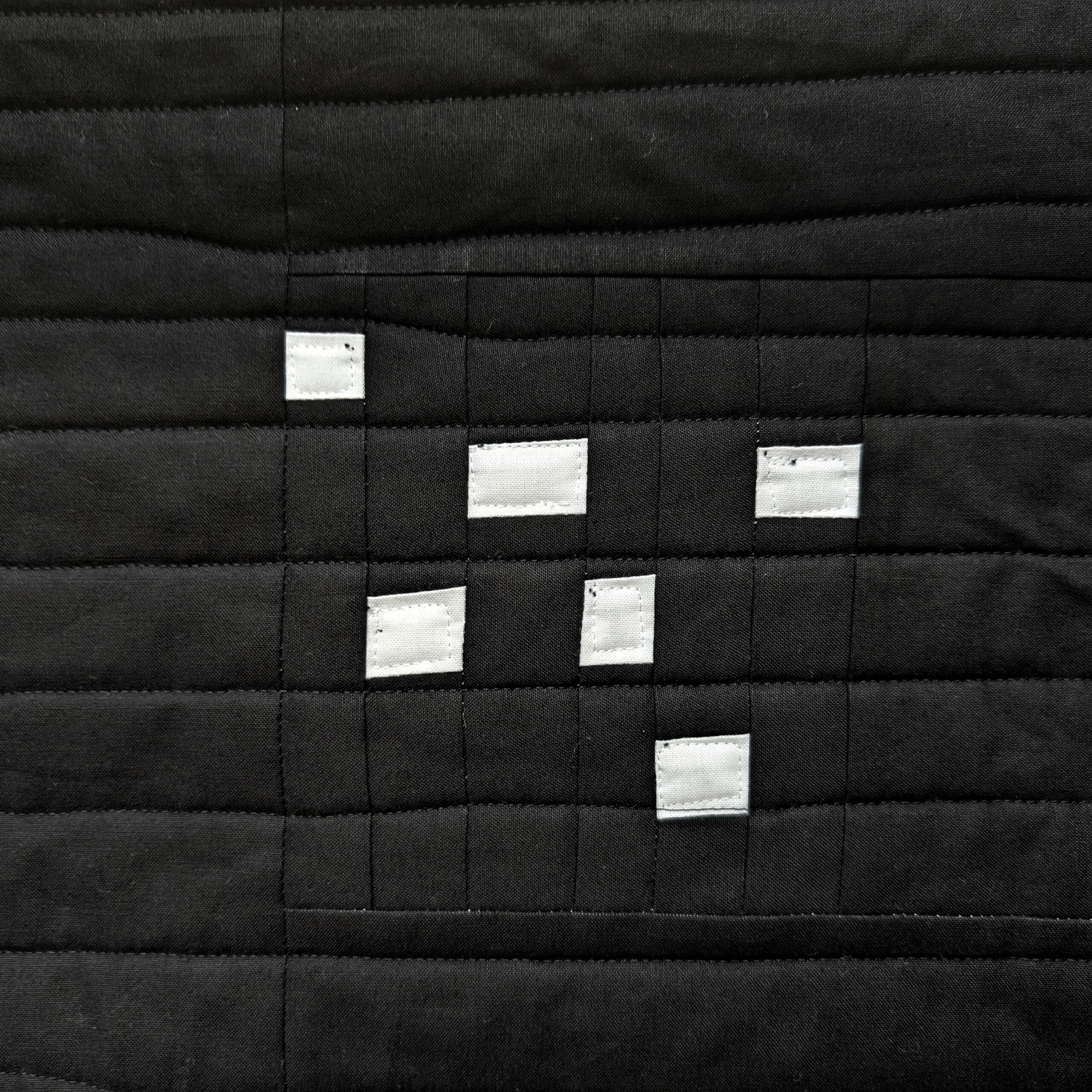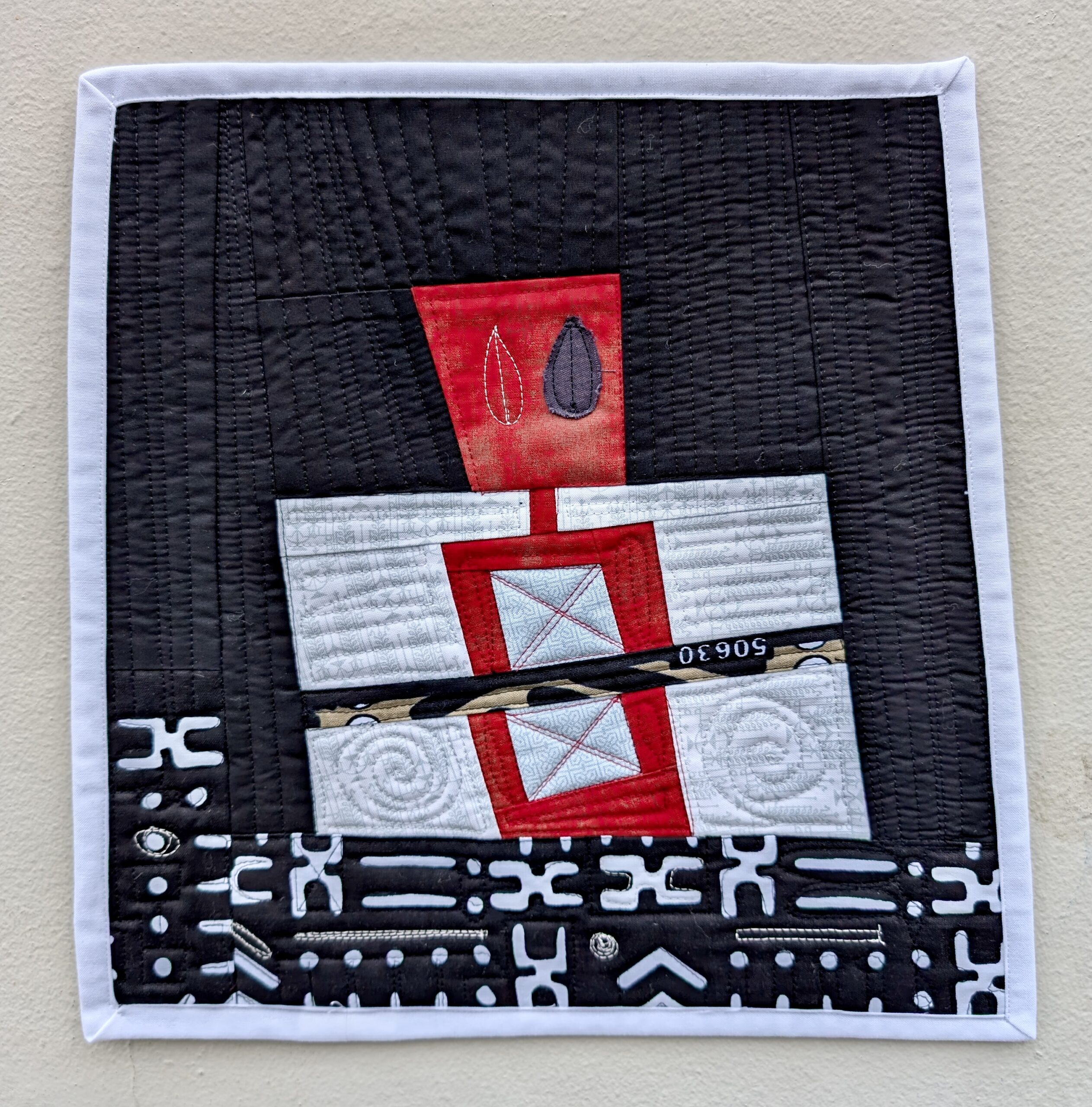Techniques: machine piecing, free motion quilting, appliqué, machine binding.